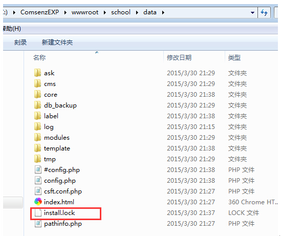 B:然后进入现有的网站根目录---data,删除掉install.lock安装锁定文件,这样就可以重新安装了